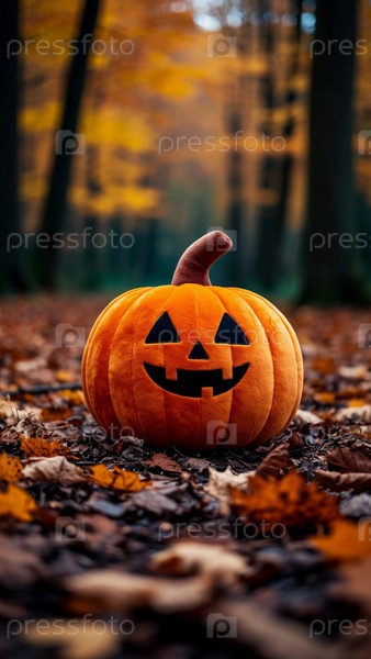 Мягкая тыквенная игрушка в осеннем лесу