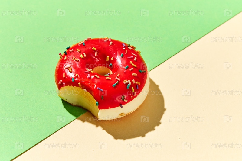 Вкусный пончик с красочными порциями на ярком фоне