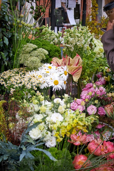 Таблетки с цветами и букетами на местном уличном рынке