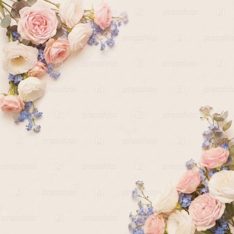 Весенний цветочный фон. пастельные розы и forget-me-nots для романтических дизайнов