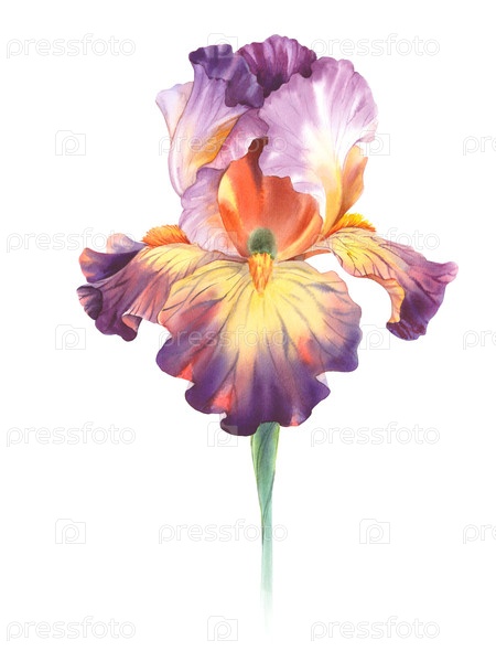 Ирисы, ручные акварельные иллюстрации для дизайна упаковки, карт, обложек, принтов, этикеток на продуктах и тканей