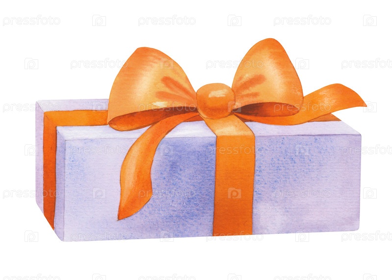 Акварельная подарочная коробка с шелковой лентой. Иллюстрация акварели. Для ткани, обоев, упаковочной бумаги, поздравительных открыток, дизайна, декора и иллюстрации