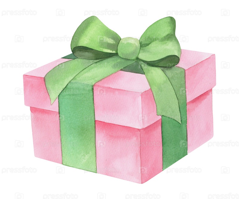 Акварельная подарочная коробка с шелковой лентой. Иллюстрация акварели. Для ткани, обоев, упаковочной бумаги, поздравительных открыток, дизайна, декора и иллюстрации
