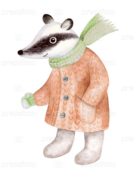 Барсук. Иллюстрация акварели для ткани, обоев, упаковочной бумаги, поздравительных открыток, дизайна, декора и иллюстрации