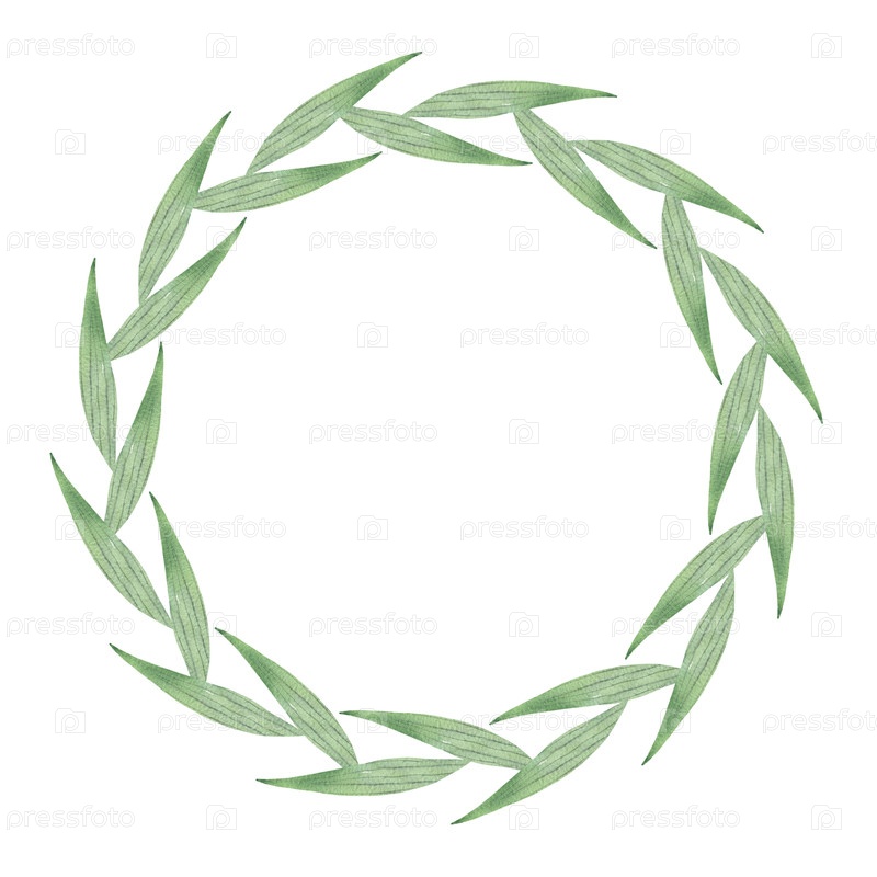 Венок из ирисовых листьев. Иллюстрация акварельных красок ручной работы. Для дизайна упаковки, карт, обложек, принтов, этикеток на продуктах и тканей