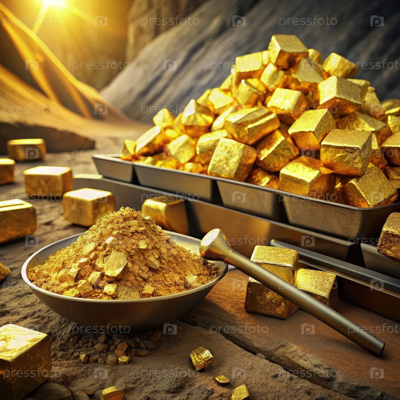 Чашка золота рядом с кучей слитков, генерирующая ИИ
