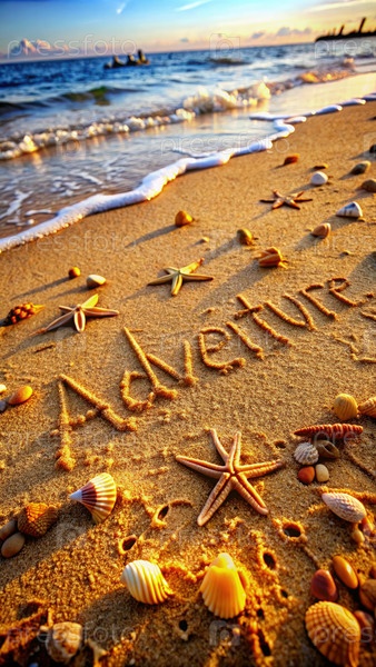 Слово 'приключение', написанное в песке, генерирует ИИ