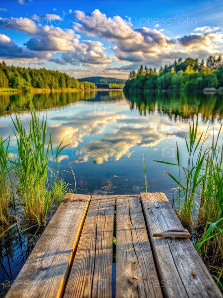 Деревянный док над рекой, генерирующий ИИ