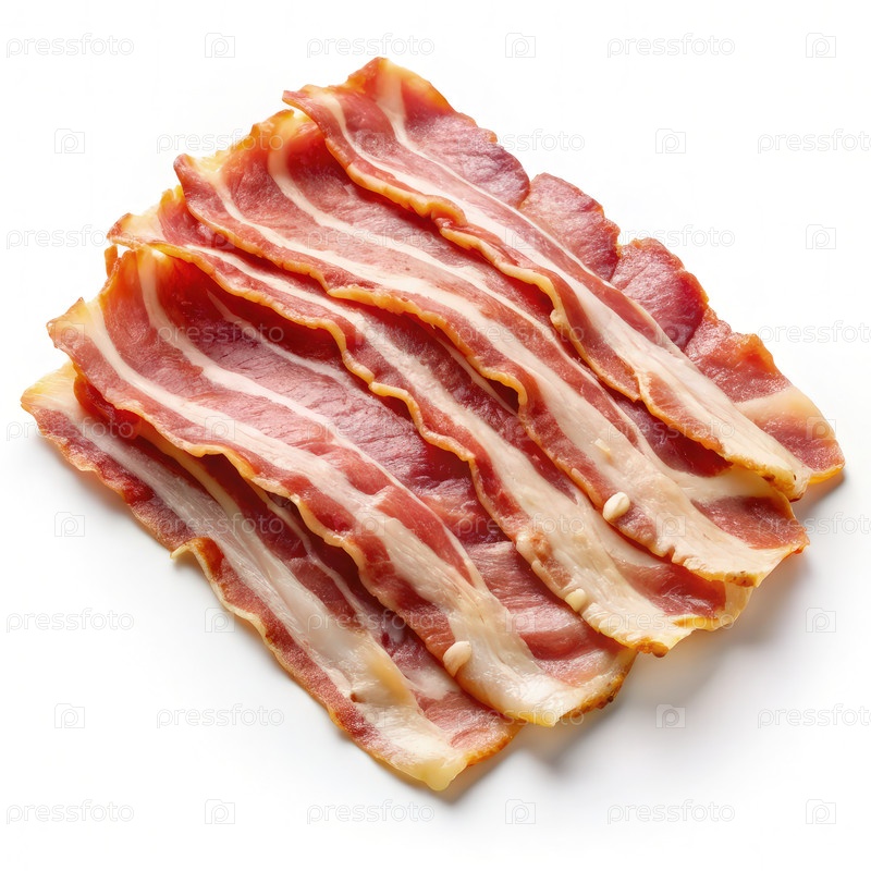 Много бекона на белой поверхности, генерируя ИИ