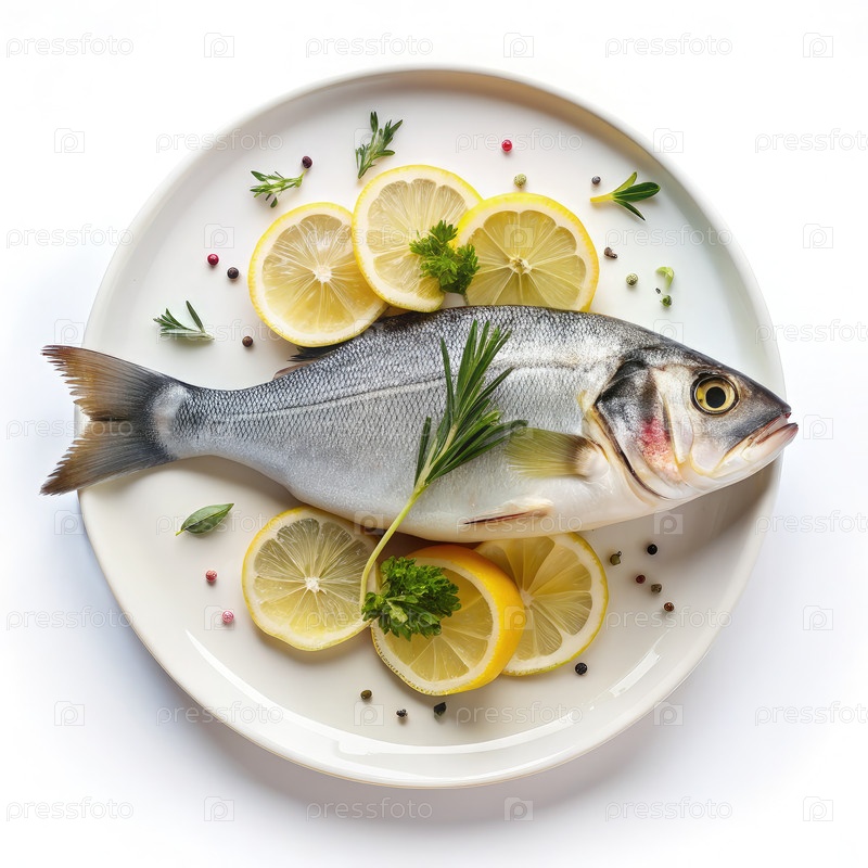 Белая печь с рыбой и лимонными ломтиками