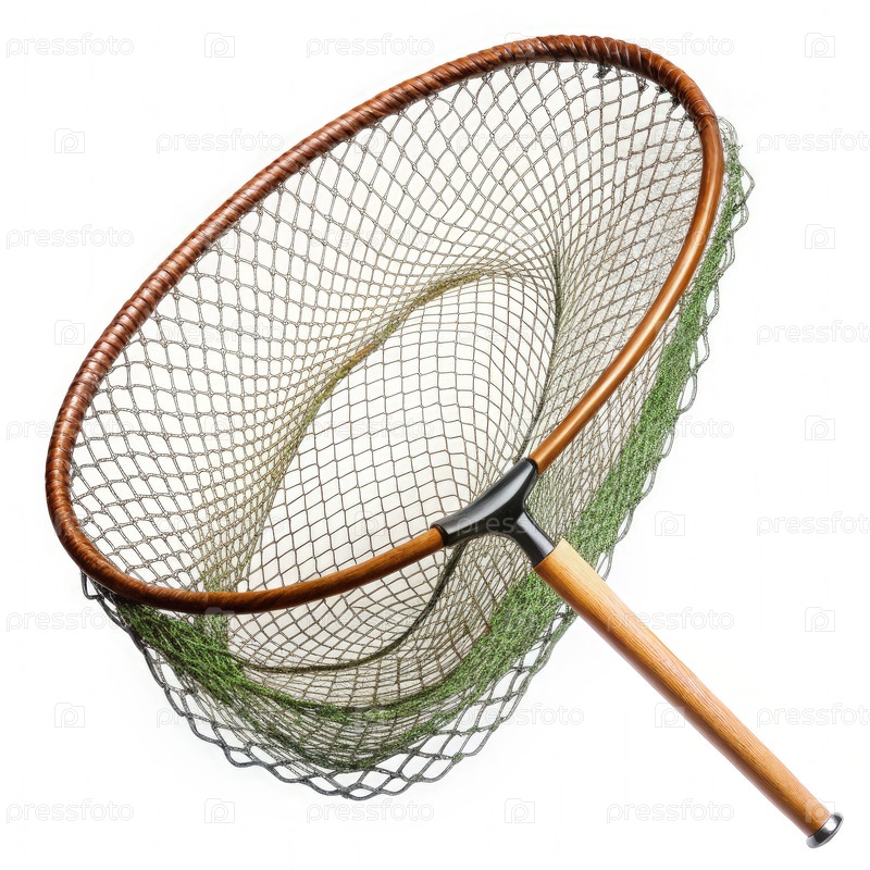 Деревянная рыбацкая сеть на белом фоне, генерирующая ИИ