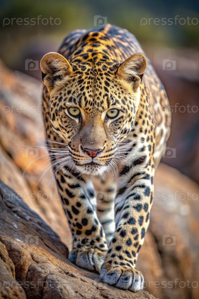 Леопард ходит по скале в дикой природе