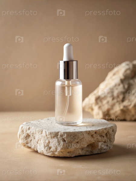 Бутылка капельницы с жидкой сущностью белого цвета на каменном генераторе AI