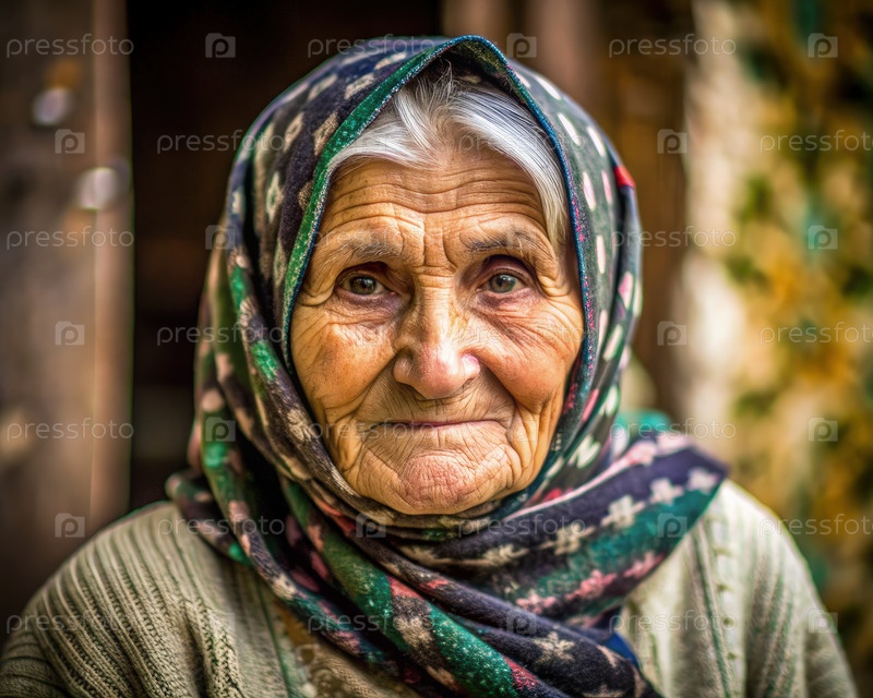 Пожилая женщина в шарфе и плато