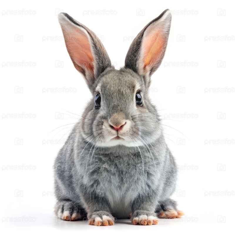 Серый кролик сидит на белом полу, генерируя ИИ