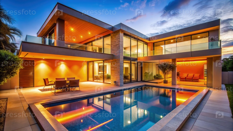 Большой дом с бассейном, генерирующий ИИ
