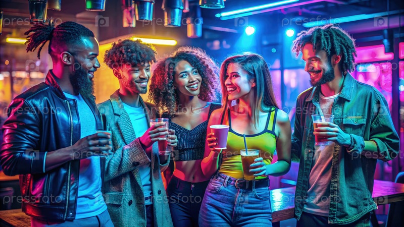 Группа молодых людей, стоящих вместе и генерирующих ИИ