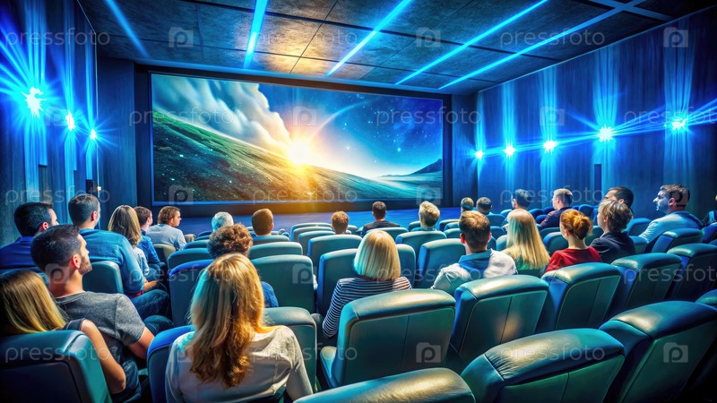 Группа людей, которые смотрят фильмы в кинотеатре.Генерирование ИИ
