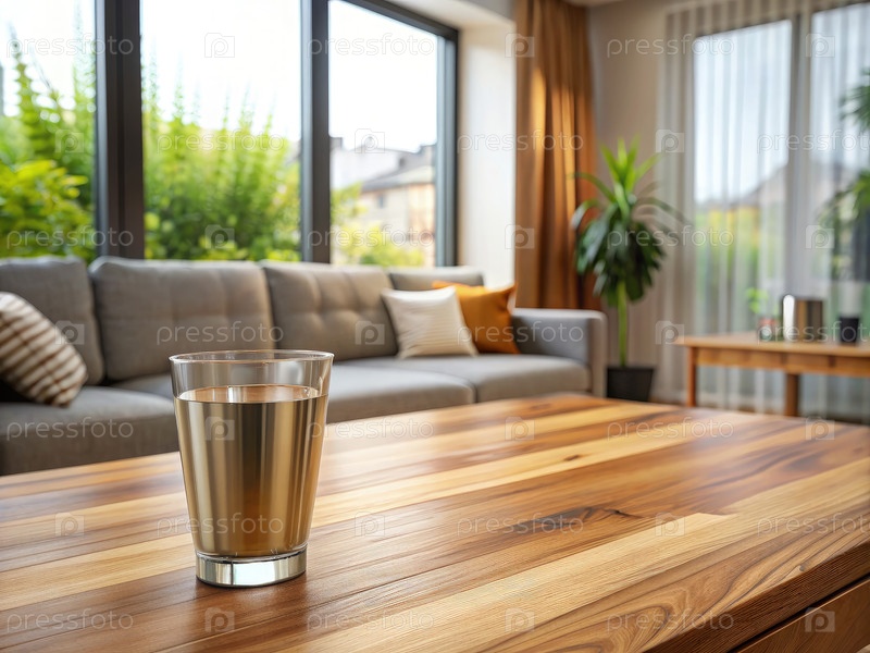 Стакан воды на деревянном столе, генерирующий ИИ A