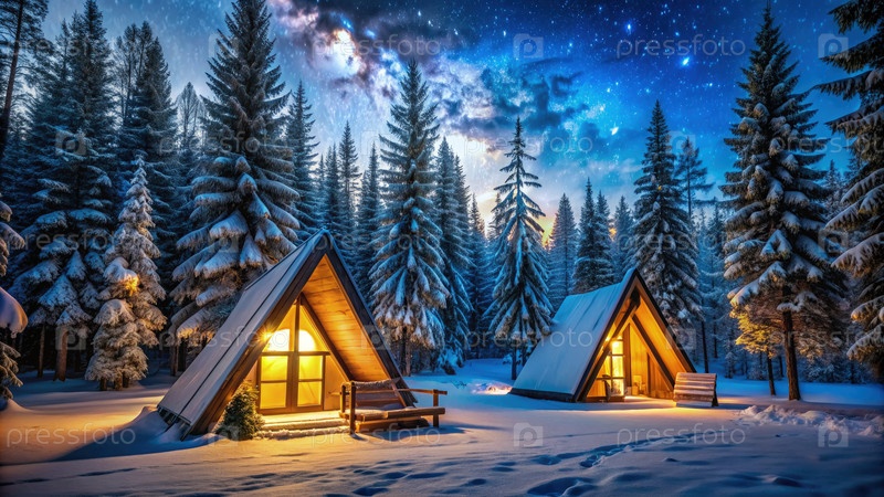 Домик в снежном лесу, генерирующий ИИ