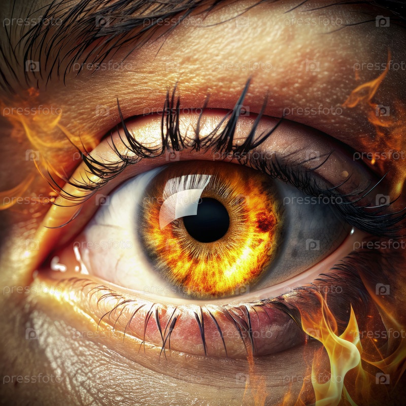 Закрыть глаза людей с огнем в радужной оболочке.Генерирование ИИ