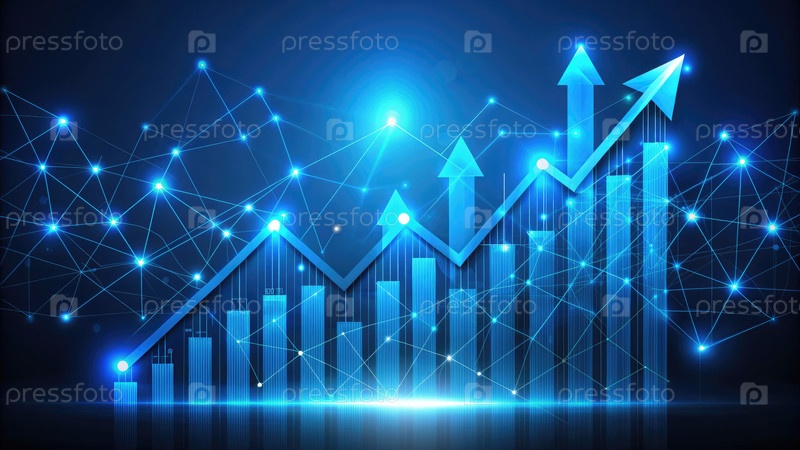 Синий фон с линейным графиком и стрелками