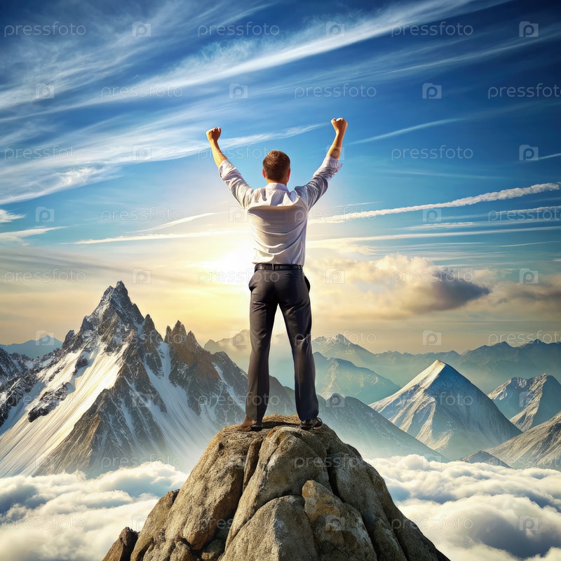 Человек Триумфа стоит на вершине горы, генерируя ИИ