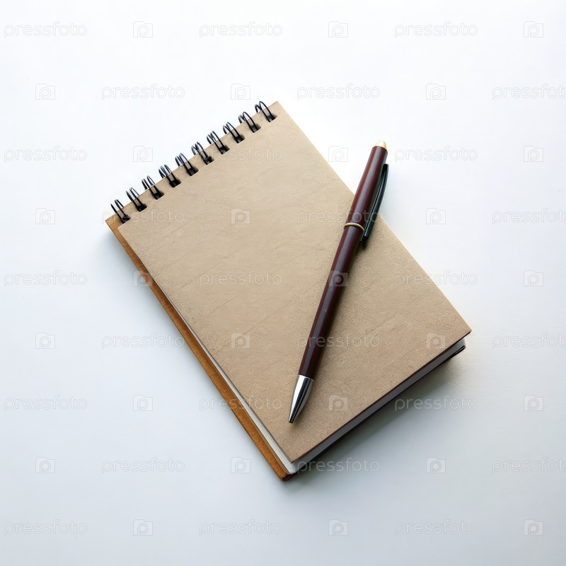 Ноутбук и ручка на белом фоне, генерирующие ИИ