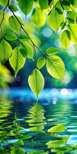 Отражение зеленых листьев в воде, генерирующее ИИ