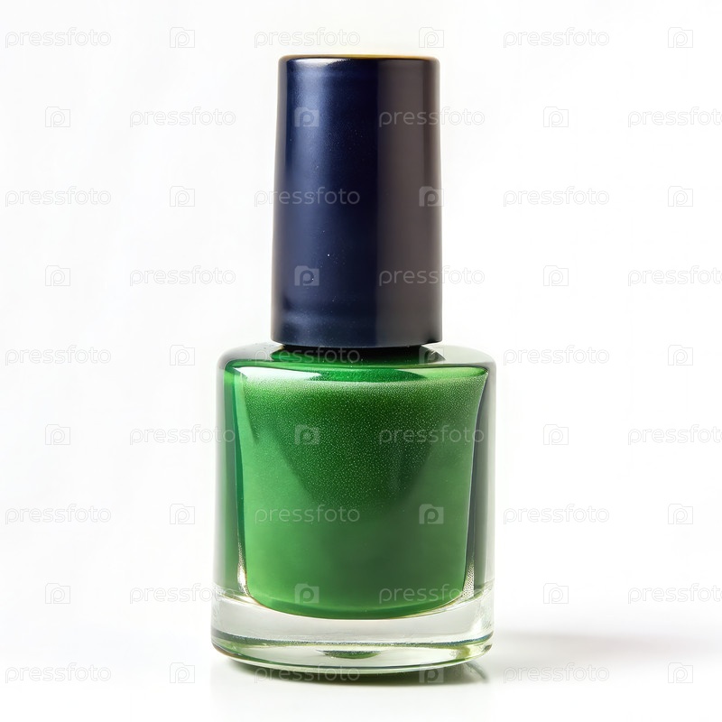 Бутылка зелёного лака на белом фоне