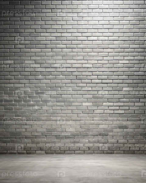 Пустая комната с серой кирпичной стеной