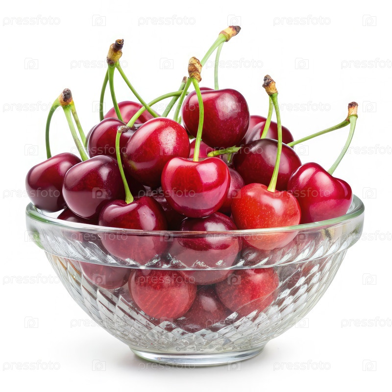 Стеклянная чаша, наполненная вишней на столе
