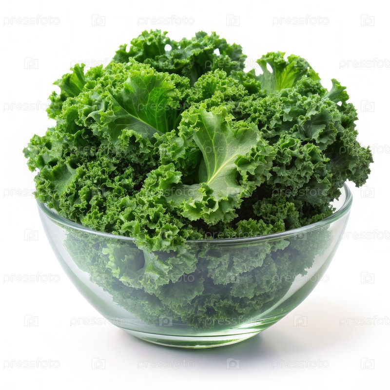 Стеклянная миска, наполненная свежими зелеными листовыми овощами