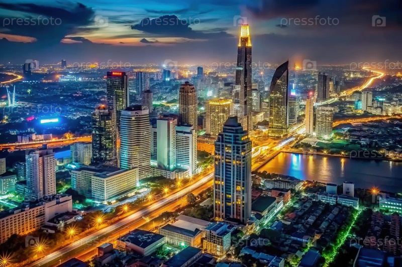 Вид из воздуха Бангкока ночью, генерирующий ИИ