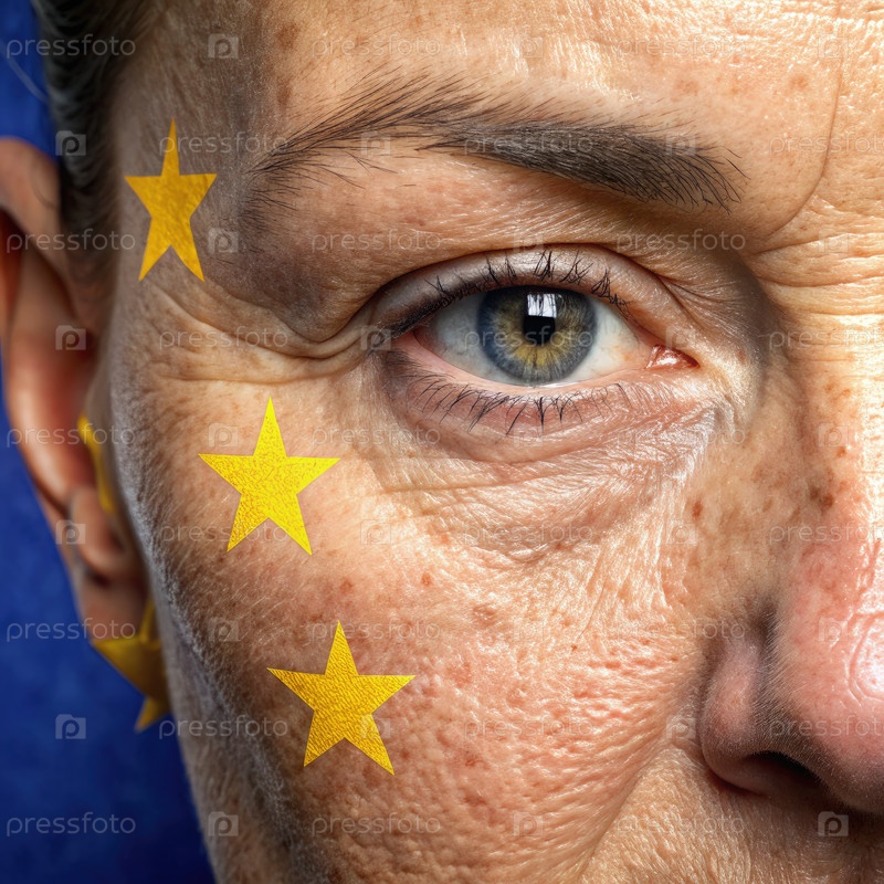 Человек с европейским флагом, нарисованным на его лице