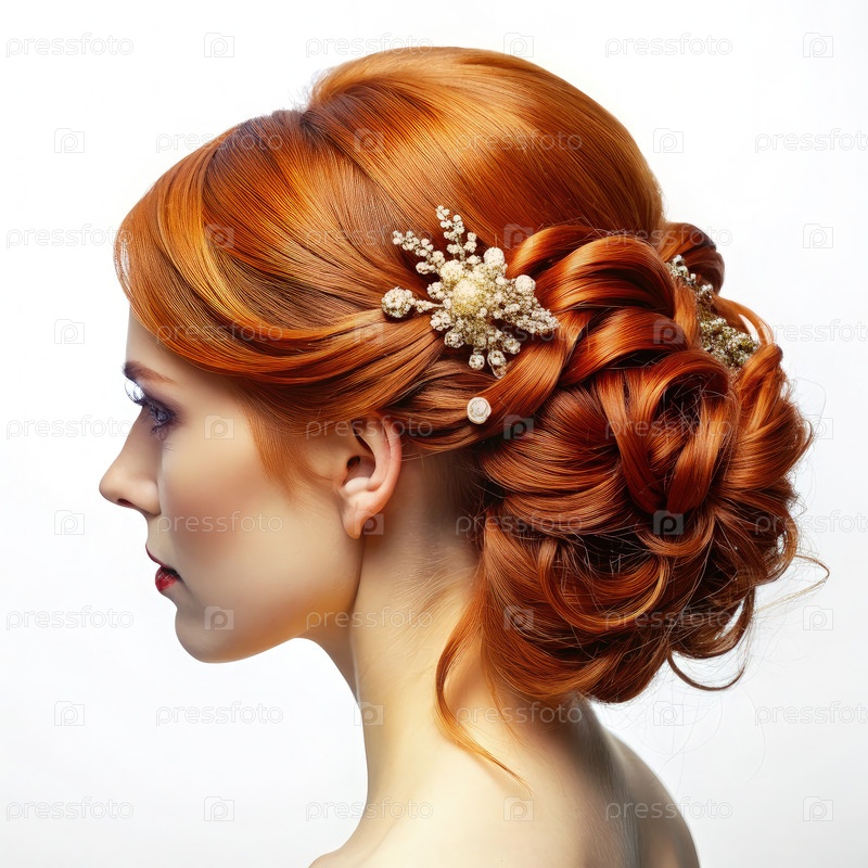 Женщина с рыжими волосами и цветом в волосах
