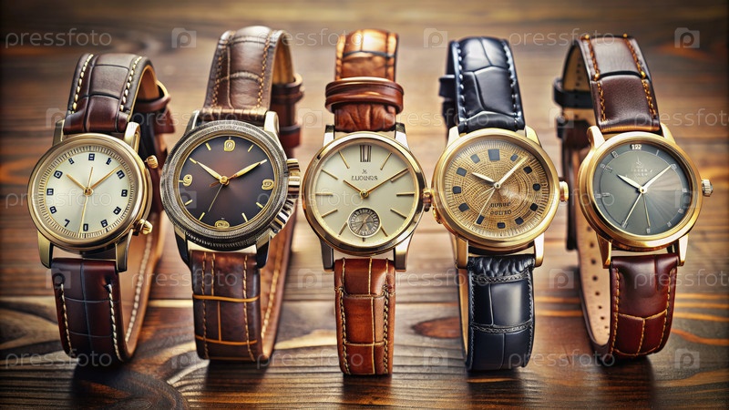 Группа часов на деревянном столе, генерирующая ИИ A