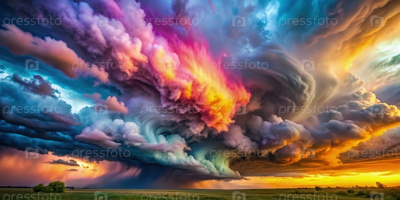 Цветные облачные взрывы на небе, заполненном облаками
