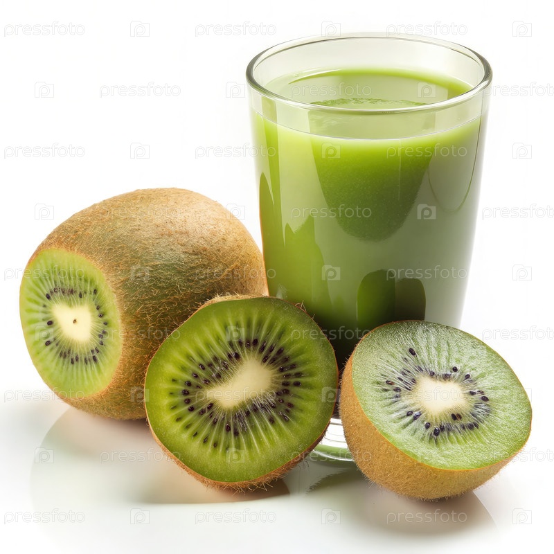 Стакан зеленого сока рядом с киви