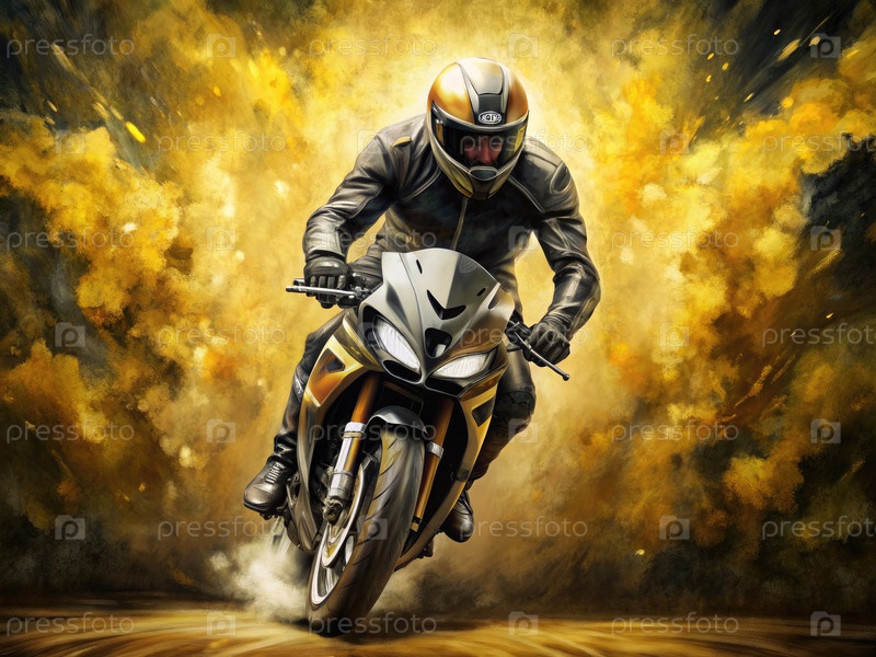 Человек на мотоцикле, генерирующий ИИ
