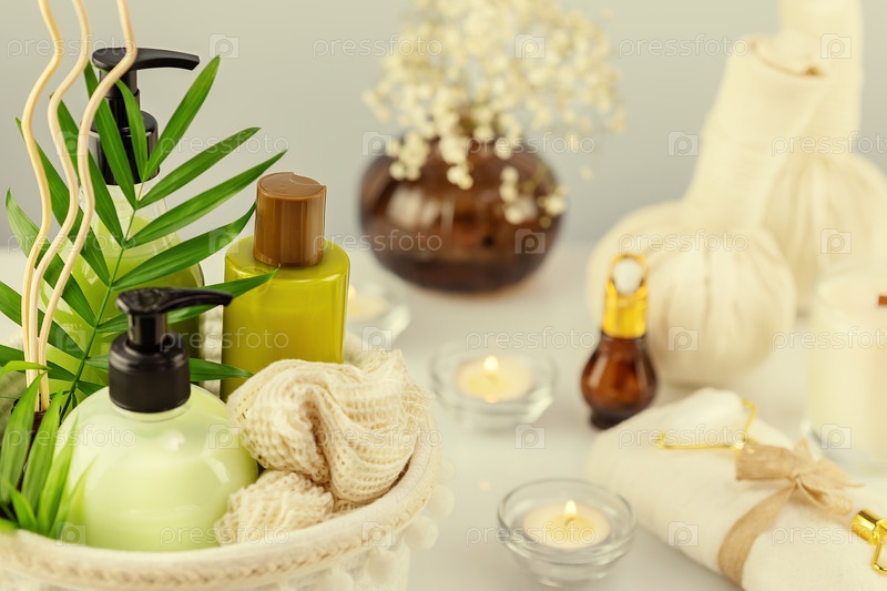 Bath расслабляет натюрморты с помощью спа-косметики и аксессуаров