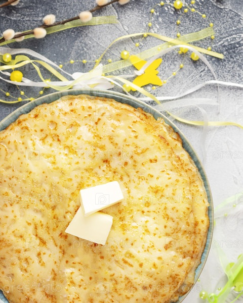 Дом жареных блинов с маслом и праздничным декором