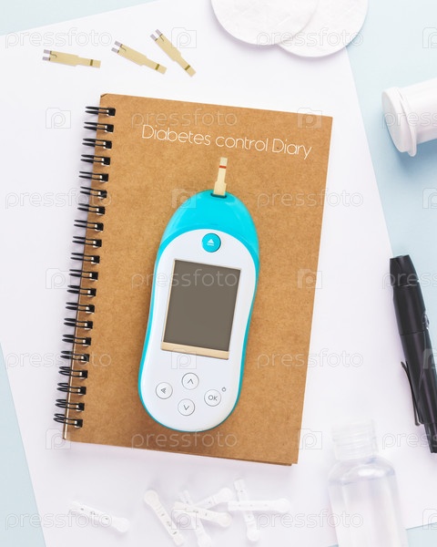 Концепция диабетического заболевания с счетчиком глюкозы и контрольным дневником
