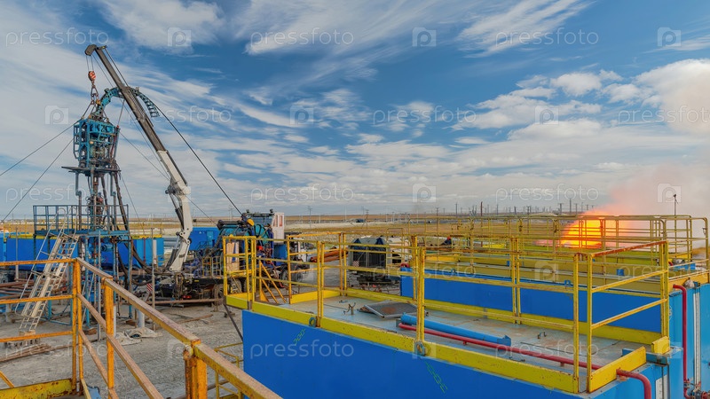 Северное газовое месторождение. Лето. Установка для опускания гибкой трубы в скважину. Оборудование для испытаний и разработки газовых скважин