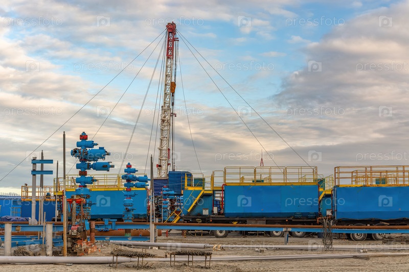 Северное газовое месторождение. Лето. Облачная погода. Инфраструктура площадки по добыче газа. Местоположение объекта