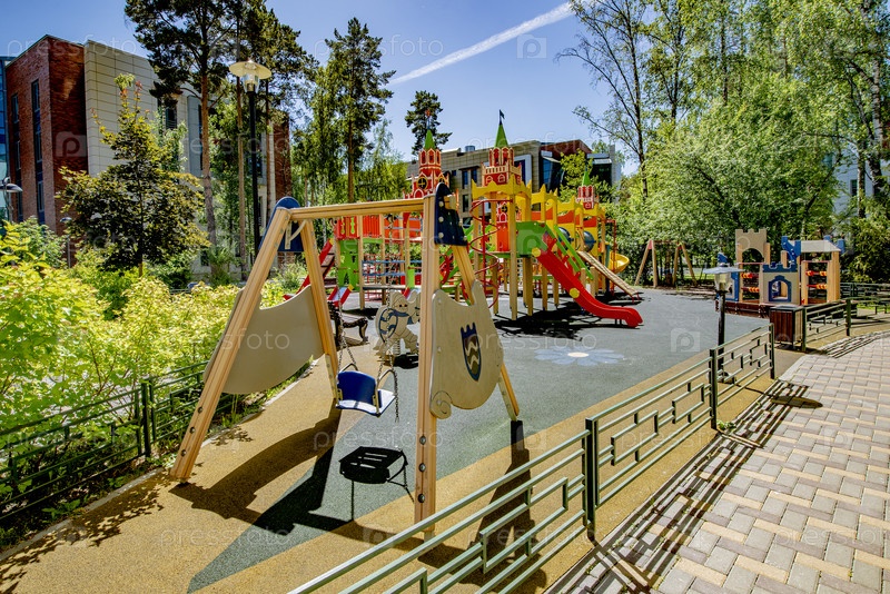 Современная игровая площадка во дворе жилого дома