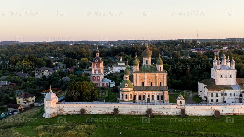 Успенский горитский монастырь - бывший православный монастырь.В свете заходящего солнца, вид с воздуха