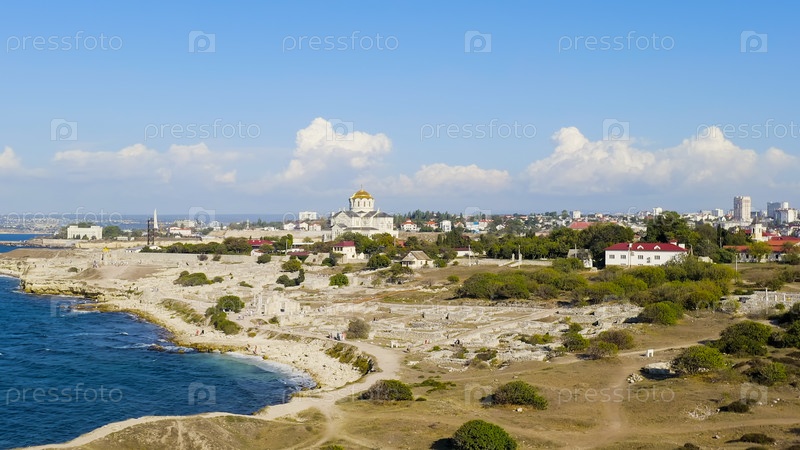Севастополь, Крым. Владимирский собор в Херсонессе. Херсонская Таурида - основана древними греками на полуострове Геркулеса на крымском побережье, вид с воздуха