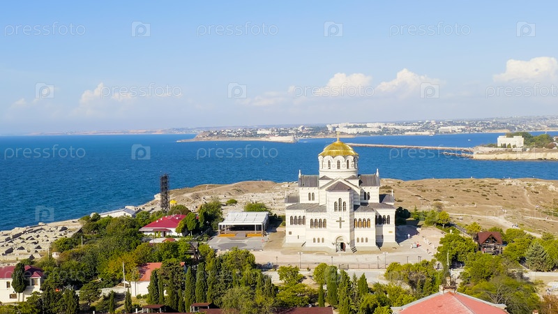Севастополь, Крым. Владимирский собор в Херсонессе. Херсонская Таурида - основана древними греками на полуострове Геркулеса на крымском побережье, вид с воздуха