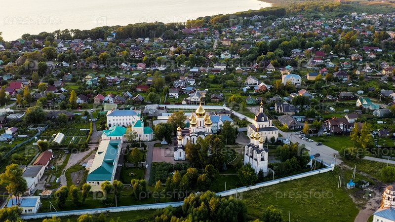 Переславль-Залеский, Россия. монастырь святого Николая Переславского. конвенция. в свете заходящего солнца вид с воздуха